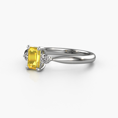 This platinum ring is called Lieselot EME and is set with 6x4 mm yellow sapphire. Are you looking for a exclusive platinum engagement ring which you can customize to your own liking? This exclusive engagement ring is set with yellow sapphire which is carefully selected for this specific ring in order to create the best effect. Our expert goldsmith will create your ring in our own crafting studio, where the yellow sapphire will be set with great care. The ring will then be polished till it shines perfectly. Nothing but the best for the love of your life! The great thing about our online tool is, that you can compile your own jewellery into a unique, personalized piece. Each piece of jewellery is made just for you, with attention to detail and design.After receiving your order, our goldsmiths will start the creative process of making your Lieselot EME engagement ring. We don't keep stock. This is advantageous because these costs will not be passed on to you. Therefore, we can offer jewellery at exceptionally low prices.Different styles of new rings are made daily by our team. Perhaps you have found a 3-stone engagement ring somewhere. One you would like to give to your loved one. Please feel free to share your thoughts and design with our jewel designers. We would love to turn your design into a exclusive engagement ring. You can follow the development of your ring design because we use very detailed 3D drawings. On top of that, you can order a dummy of the design. A dummy is a plastic ring, which can be shaped according your ring design. You can try it on and check if the engagement ring is up to standard. We will gladly send you a non-binding offer, based on a fair price/ quality ratio. The offer will baffle you, considering the quality of the ring and gemstones.To make it easier for you, we offer a 30 day return policy. Check our terms and conditions.