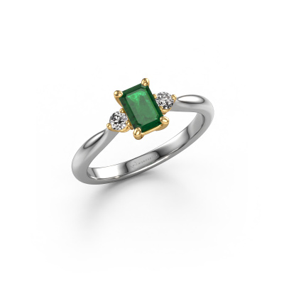 This 14 Carat white gold ring is called Lieselot EME and is set with 6x4 mm emerald. Are you looking for a exclusive white gold engagement ring which you can customize to your own liking? This exclusive engagement ring is set with emerald which is carefully selected for this specific ring in order to create the best effect. Our expert goldsmith will create your ring in our own crafting studio, where the emerald will be set with great care. The ring will then be polished till it shines perfectly. Nothing but the best for the love of your life! The great thing about our online tool is, that you can compile your own jewellery into a unique, personalized piece. Each piece of jewellery is made just for you, with attention to detail and design.After receiving your order, our goldsmiths will start the creative process of making your Lieselot EME engagement ring. We don't keep stock. This is advantageous because these costs will not be passed on to you. Therefore, we can offer jewellery at exceptionally low prices.Different styles of new rings are made daily by our team. Perhaps you have found a 3-stone engagement ring somewhere. One you would like to give to your loved one. Please feel free to share your thoughts and design with our jewel designers. We would love to turn your design into a exclusive engagement ring. You can follow the development of your ring design because we use very detailed 3D drawings. On top of that, you can order a dummy of the design. A dummy is a plastic ring, which can be shaped according your ring design. You can try it on and check if the engagement ring is up to standard. We will gladly send you a non-binding offer, based on a fair price/ quality ratio. The offer will baffle you, considering the quality of the ring and gemstones.To make it easier for you, we offer a 30 day return policy. Check our terms and conditions.