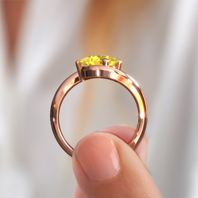 This 14 Carat rose gold ring is called Aida PER and is set with 9x7 mm yellow sapphire. Are you looking for a fantasy rose gold engagement ring which you can customize to your own liking? This fantasy engagement ring is set with yellow sapphire