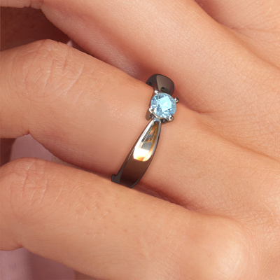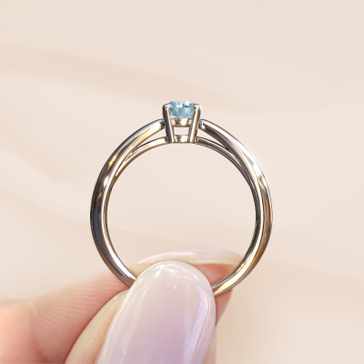 The ring shown above is called the Nichole. We call this a solitaire ring because it contains a single gemstone. The engagement ring is made in 14 Carat white gold and has a round blue lab grown diamond of 4.2 mm. This extraordinary fantasy white gold solitaire engagement ring is set with a beautiful round blue lab grown diamond to add sparkle to your proposal. The open prong setting allows light to strike the gemstone from various angles. Did you know a diamond represents everlasting love and fidelity? This makes it a perfect centrepiece. Our goldsmith carefully positions the gemstone of your choosing high on top of the ring, which makes it stand out. Each piece of jewellery is made just for you by our master goldsmiths in our own studio.