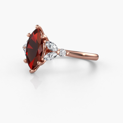The ring shown above is called the Megan MRQ. We call this type of ring a pavé solitaire ring because it has one centre gemstone and a band that is also pave set with gemstones. This engagement ring is made in 14 Carat rose gold set with a 11x5.5 mm marquise garnet, and pave set lab-grown diamonds at the sides. Each piece of jewellery is made with passion and love by one of our master goldsmiths.This fantasy rose gold pavé solitaire engagement ring has an exquisite marquise garnet centre stone. To further accentuate the centre stone, the band is set full with more lab-grown diamonds. Its open prong setting allows light to strike the garnet from various angles and this adds sparkle to your garnet ring. The photo shown above depicts the goldsmith's carefully handcrafted details of the ring. The high positioning of the centre stone is truly eye-catching. The perfect engagement ring for the crown jewel of your life![bestp1v_long]Have you found a specific engagement ring somewhere which you would like to give to your loved one? Please feel free to express your wishes to our jewel designers because we would be honoured to turn your design into a fantasy engagement ring. You can follow the development of your ring design because we use 3D drawings. This gives you a realistic preview of how your design will look. You can also preorder a dummy. A dummy is a plastic ring, which can be shaped according your ring design. You can try it on and check if its width and size are suitable for you. We will gladly send you a non-binding offer, based on a fair price/ quality ratio. It will amaze you, considering the quality of the ring and gemstones.To make it easier for you, we offer a 30 day return policy. Check our terms and conditions.