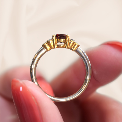 This 14 Carat white gold ring is called Lucy 2 and is set with garnet. How would you describe the style of the love of your life? Does she have a unique sense of style? This stunning graceful white gold engagement ring can be custom-made to your own or her liking. Our garnet gemstones have been carefully selected because we believe your classic engagement ring must be adorned with nothing but the most beautiful gemstone. Don't you agree? This jewel is made to shine bright around your finger. Each jewel is hand made with love by our goldsmiths.By using our modern techniques, we can design and customize the finest quality jewels with the utmost care for you. Our engagement rings are always priced 30 percent lower than other jewellers. We make engagement rings to order so we don't have to maintain a large stock. If you have a certain budget, we are more than happy to advice you accordingly.Do you have a specific ring in mind? One you came across somewhere. Please feel free to tell us your wishes and we will turn your design into a unique engagement ring. You can follow the development of your ring design because we use 3D drawings. This gives you a realistic preview of your design. We will gladly send you a non-binding offer, based on a fair price/ quality ratio. It will amaze you.To make it easier for you, we offer a 30 day return policy. Check our terms and conditions.