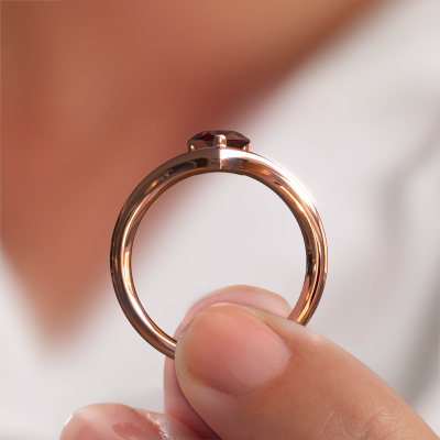 In your eyes, no one else compares to her. She is one in a million, unlike anyone else and pure? These qualities are emphasized perfectly by our modern rose gold solitaire garnet ring. This garnet is carefully selected by our keen artisan goldsmiths. It equals the unique qualities of the love of your life. There is no better way to memorialize your proposal than this symbol of true love. The ring shown above is called the Maddy PER, we call this a solitaire ring because it contains a single gemstone. The engagement ring is made in 14 Carat rose gold and has a pear garnet of 8x6 mm. Each piece of jewellery is made with passion and love by one of our master goldsmiths.After receiving your order, our goldsmiths will passionately start the creative process of making your engagement ring in our own studio. Because we don't have a big stockpile, these costs will not be passed on to you. Our pricing is proof of that! We offer top quality jewels at lowest price, guaranteed.Our team adds new designs to our online collection daily. Our designers and goldsmiths work together in creating the best design. We strive to offer a diverse collection of jewels. Perhaps you have a specific jewel design in mind. One you came across somewhere. Please contact us for a free consultation. We will make you an offer, based on a fair price/ quality ratio, that will baffle you.To make it easier for you, we offer a 30 day return policy. Check our terms and conditions.