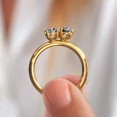 This 14 Carat gold ring is called Toi et Moi OVL-RND and is set with diamond. Are you in the market for a unique gold engagement ring with a trendy appearance? Then this ring is perfect for you. Simply customize to your or her liking. This chic graceful engagement ring is set with exquisite diamond. It has been carefully selected because your engagement ring must be adorned with nothing but the most beautiful gemstone. Our expert goldsmith will create your ring in our own studio where the diamond will be set with great care. The ring will then be polished to perfection to give it that extra sparkle. The perfect ring for your significant other! Are you on a budget? Please feel free to contact us, so we can go discuss your options. We offer our engagement rings at guaranteed best price, because we make them to order. You won't find such a price anywhere else!Have you found a specific engagement ring somewhere which you would like to give to your loved one? Please feel free to express your wishes to our jewel designers because we would be honoured to turn your design into a chic engagement ring. You can follow the development of your ring design because we use 3D drawings. This gives you a realistic preview of how your design will look. You can also preorder a dummy. A dummy is a plastic ring, which can be shaped according your ring design. You can try it on and check if its width and size are suitable for you. We will gladly send you a non-binding offer, based on a fair price/ quality ratio. It will amaze you, considering the quality of the ring and gemstones.To make it easier for you, we offer a 30 day return policy. Check our terms and conditions.