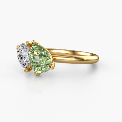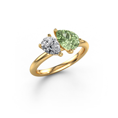 This 14 Carat gold ring is called Toi et Moi PER-PER and is set with green lab grown diamond. Are you in the market for a unique gold engagement ring with a trendy appearance? Then this ring is perfect for you. Simply customize to your or her liking. This fashionable fashionable engagement ring is set with exquisite green lab grown diamond. It has been carefully selected because your engagement ring must be adorned with nothing but the most beautiful gemstone. Our expert goldsmith will create your ring in our own studio where the green lab grown diamond will be set with great care. The ring will then be polished to perfection to give it that extra sparkle. The perfect ring for your significant other! After receiving your order, our goldsmiths will passionately start the creative process of making your engagement ring in our own studio. Because we don't have a big stockpile, these costs will not be passed on to you. Our pricing is proof of that! We offer top quality jewels at lowest price, guaranteed.Our designers and goldsmiths work together each day, creating new jewels. Perhaps you have found a nice fashionable engagement ring somewhere, which can be used to customize your unique ring. Please feel free to contact us. We will make you an offer, based on a fair price/ quality ratio, which will amaze you.To make it easier for you, we offer a 30 day return policy. Check our terms and conditions.
