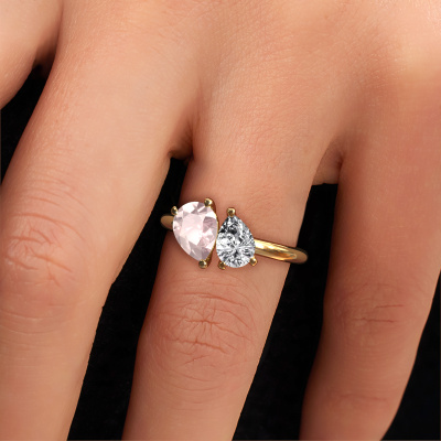 This 14 Carat gold ring is called Toi et Moi PER-PER and is set with morganite champagne. Are you in the market for a unique gold engagement ring with a trendy appearance? Then this ring is perfect for you. Simply customize to your or her liking. This fashionable fashionable engagement ring is set with exquisite morganite champagne. It has been carefully selected because your engagement ring must be adorned with nothing but the most beautiful gemstone. Our expert goldsmith will create your ring in our own studio where the morganite champagne will be set with great care. The ring will then be polished to perfection to give it that extra sparkle. The perfect ring for your significant other! After receiving your order, our goldsmiths will passionately start the creative process of making your engagement ring in our own studio. Because we don't have a big stockpile, these costs will not be passed on to you. Our pricing is proof of that! We offer top quality jewels at lowest price, guaranteed.Our designers and goldsmiths work together each day, creating new jewels. Perhaps you have found a nice fashionable engagement ring somewhere, which can be used to customize your unique ring. Please feel free to contact us. We will make you an offer, based on a fair price/ quality ratio, which will amaze you.To make it easier for you, we offer a 30 day return policy. Check our terms and conditions.