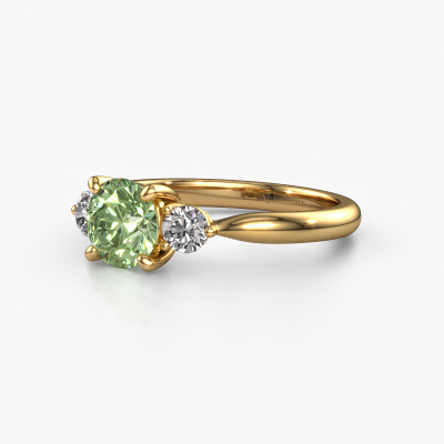 This 14 Carat gold ring is called Lieselot RND and is set with 6.5 mm green lab grown diamond. This filigree gold engagement ring is a true work of art! A beautifully adorned design of intricate wires. With dedication, patience and the utmost precision, our expert goldsmith will design a ring just for you. The adornment of small wiring is crafted to perfection by hand. It's a lengthy process which includes welding, crafting and polishing until our Goldsmiths are completely satisfied with the result: a perfect eye-catching ring that makes her shine with delight. Therefore the fantasy filigree engagement ring is an extraordinary gift to bestow upon the love of your life. A handmade one-of-a-kind personalized ring, to be given to that special someone on that special moment when you pop the question. Isn't that wonderful? This piece of jewellery is made just for you by our master goldsmiths in our own studio.Because we design and deliver our own rings, we can offer you a engagement ring at a price you won't find anywhere else. A ring is made to order, which helps prevent excess supplies, so we can make you a great price offer. We understand it feels risky, buying your engagement ring online, but we will gladly assist in the designing process, taking your budget into consideration.Our team adds new designs to our online collection daily. Our designers and goldsmiths work together in creating the best design. We strive to offer a diverse collection of jewels. Perhaps you have a specific jewel design in mind. One you came across somewhere. Please contact us for a free consultation. We will make you an offer, based on a fair price/ quality ratio, that will baffle you.To make it easier for you, we offer a 30 day return policy. Check our terms and conditions.