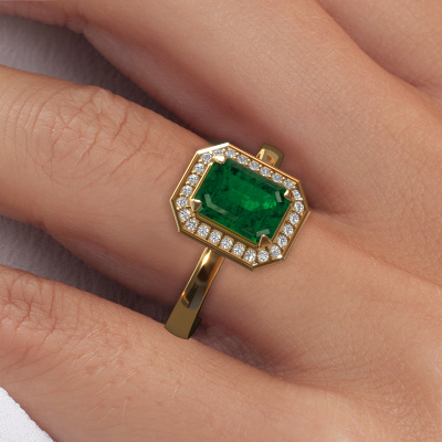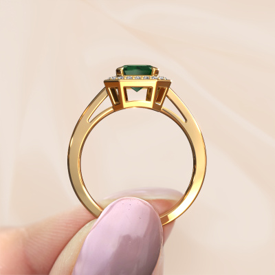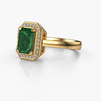 This 14 Carat gold ring is called Dodie 1 eme and is set with 8x6 mm emerald. Does your girlfriend fancy exclusive jewellery? Or would you like to show her that she deserves the finest jewellery? This gold ring is pure craftsmanship, love and passion combined with the latest techniques coming together in perfect harmony. It requires a keen eye, patience and a skilful hand to mould this ring into perfection. Just the job for our expert goldsmith! The emerald set gemstones gives this gold ring an extra glamorous appearance. Customize the style of the special engagement ring to her liking with a wide variety of precious metals and gemstones which you select. That is how you create a unique ring for the most exclusive woman in your life! This jewel is made to shine bright around your finger. Each jewel is hand made with love by our goldsmiths.After receiving your order, our goldsmiths will start the creative process of making your Dodie 1 eme engagement ring. We don't keep stock. This is advantageous because these costs will not be passed on to you. Therefore, we can offer jewellery at exceptionally low prices.Our team adds new designs to our online collection daily. Our designers and goldsmiths work together in creating the best design. We strive to offer a diverse collection of jewels. Perhaps you have a specific jewel design in mind. One you came across somewhere. Please contact us for a free consultation. We will make you an offer, based on a fair price/ quality ratio, that will baffle you.To make it easier for you, we offer a 30 day return policy. Check our terms and conditions.