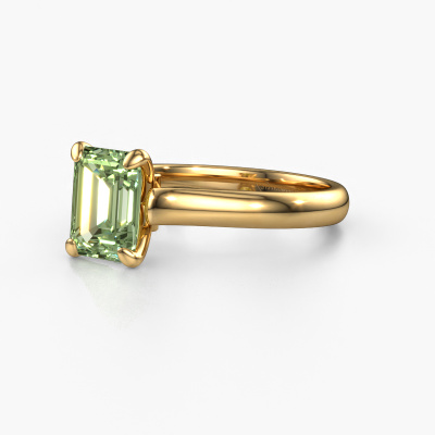 This 14 Carat gold ring is called Valorie eme 1 and is set with 9x7 mm green lab grown diamond. Does your girlfriend fancy exclusive jewellery? Or would you like to show her that she deserves the finest jewellery? This gold ring is pure craftsmanship, love and passion combined with the latest techniques coming together in perfect harmony. It requires a keen eye, patience and a skilful hand to mould this ring into perfection. Just the job for our expert goldsmith! The green lab grown diamonds set gemstones gives this gold ring an extra glamorous appearance. Customize the style of the refined engagement ring to her liking with a wide variety of precious metals and gemstones which you select. That is how you create a unique ring for the most exclusive woman in your life! This jewel is made just for you, with attention to detail and design.By using our modern techniques, we can design and customize the finest quality jewels with the utmost care for you. Our engagement rings are always priced 30 percent lower than other jewellers. We make engagement rings to order so we don't have to maintain a large stock. If you have a certain budget, we are more than happy to advice you accordingly.Different styles of new rings are made daily by our team. Perhaps you have found a solitaire engagement ring somewhere. One you would like to give to your loved one. Please feel free to share your thoughts and design with our jewel designers. We would love to turn your design into a exclusive engagement ring. You can follow the development of your ring design because we use very detailed 3D drawings. On top of that, you can order a dummy of the design. A dummy is a plastic ring, which can be shaped according your ring design. You can try it on and check if the engagement ring is up to standard. We will gladly send you a non-binding offer, based on a fair price/ quality ratio. The offer will baffle you, considering the quality of the ring and gemstones.To make it easier for you, we offer a 30 day return policy. Check our terms and conditions.