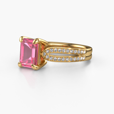 This 14 Carat gold ring is called Antonia eme 2 and is set with 8x6 mm pink sapphire. Does your girlfriend fancy exclusive jewellery? Or would you like to show her that she deserves the finest jewellery? This gold ring is pure craftsmanship, love and passion combined with the latest techniques coming together in perfect harmony. It requires a keen eye, patience and a skilful hand to mould this ring into perfection. Just the job for our expert goldsmith! The pink sapphire set gemstones gives this gold ring an extra glamorous appearance. Customize the style of the split band engagement ring to her liking with a wide variety of precious metals and gemstones which you select. That is how you create a unique ring for the most exclusive woman in your life! This jewel is made to shine bright around your finger. Each jewel is hand made with love by our goldsmiths.After receiving your order, our goldsmiths will start the creative process of making your Antonia eme 2 engagement ring. We don't keep stock. This is advantageous because these costs will not be passed on to you. Therefore, we can offer jewellery at exceptionally low prices.Do you have a specific ring in mind? One you came across somewhere. Please feel free to tell us your wishes and we will turn your design into a unique engagement ring. You can follow the development of your ring design because we use 3D drawings. This gives you a realistic preview of your design. We will gladly send you a non-binding offer, based on a fair price/ quality ratio. It will amaze you.To make it easier for you, we offer a 30 day return policy. Check our terms and conditions.