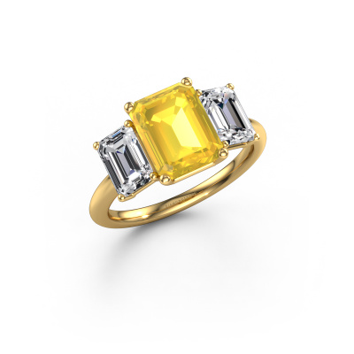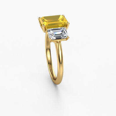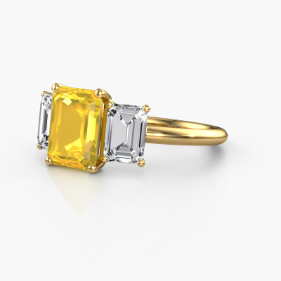 This 14 Carat gold ring is called Sandra and is set with 9x7 mm yellow sapphire. Does your girlfriend fancy exclusive jewellery? Or would you like to show her that she deserves the finest jewellery? This gold ring is pure craftsmanship, love and passion combined with the latest techniques coming together in perfect harmony. It requires a keen eye, patience and a skilful hand to mould this ring into perfection. Just the job for our expert goldsmith! The yellow sapphire set gemstones gives this gold ring an extra glamorous appearance. Customize the style of the special engagement ring to her liking with a wide variety of precious metals and gemstones which you select. That is how you create a unique ring for the most exclusive woman in your life! This jewel is made just for you by our master goldsmiths in our own studio.Because we design and deliver our own rings, we can offer you a engagement ring at a price you won't find anywhere else. A ring is made to order, which helps prevent excess supplies, so we can make you a great price offer. We understand it feels risky, buying your engagement ring online, but we will gladly assist in the designing process, taking your budget into consideration.Different styles of new rings are made daily by our team. Perhaps you have found a 3-stone engagement ring somewhere. One you would like to give to your loved one. Please feel free to share your thoughts and design with our jewel designers. We would love to turn your design into a exclusive engagement ring. You can follow the development of your ring design because we use very detailed 3D drawings. On top of that, you can order a dummy of the design. A dummy is a plastic ring, which can be shaped according your ring design. You can try it on and check if the engagement ring is up to standard. We will gladly send you a non-binding offer, based on a fair price/ quality ratio. The offer will baffle you, considering the quality of the ring and gemstones.To make it easier for you, we offer a 30 day return policy. Check our terms and conditions.