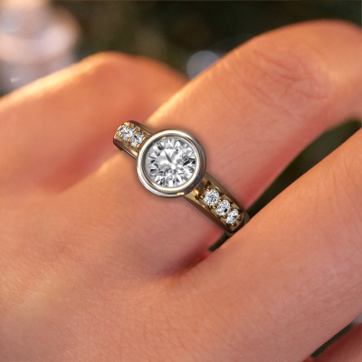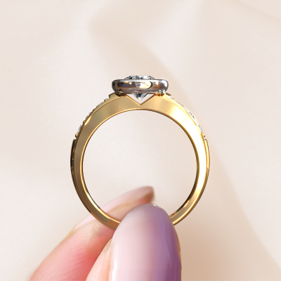 The ring shown above is called the Lieke. We call this type of ring a pavé solitaire ring because it has one centre gemstone and a band that is also pave set with gemstones. The 14 Carat gold engagement ring is set with a round 0.70 crt diamond centre stone and the band is pave set with diamond gemstones. Each jewel is unique in every way! Simply customize to your likingThis classic gold pavé solitaire engagement ring has an exquisite round diamond centre stone. To further accentuate the centre stone, the band is fully set with more diamonds. Its open prong setting allows light to strike the diamond from various angles and this adds sparkle to your diamond ring. The photo shown above depicts the goldsmith's carefully handcrafted details of the ring. The high positioning of the centre stone is truly eye-catching. The perfect engagement ring for the crown jewel of your life! By using a combination of the latest modern techniques, combined with ancient crafting, we can make all our engagement rings in our own studio. Each jewel is made to order. This is advantageous because we can offer you a price you won't find anywhere else.Different styles of new rings are made daily by our team. Perhaps you have found a pavé solitaire engagement ring somewhere. One you would like to give to your loved one. Please feel free to share your thoughts and design with our jewel designers. We would love to turn your design into a classic engagement ring. You can follow the development of your ring design because we use very detailed 3D drawings. On top of that, you can order a dummy of the design. A dummy is a plastic ring, which can be shaped according your ring design. You can try it on and check if the engagement ring is up to standard. We will gladly send you a non-binding offer, based on a fair price/ quality ratio. The offer will baffle you, considering the quality of the ring and gemstones.To make it easier for you, we offer a 30 day return policy. Check our terms and conditions.