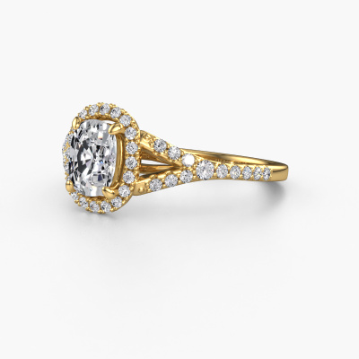The ring shown above is called the Kimber CSH. We call this type of ring a pavé solitaire ring because it has one centre gemstone and a band that is also pave set with gemstones. The 14 Carat gold engagement ring is set with a cushion rectangle 1.00 crt lab grown diamond centre stone and the band is pave set with lab grown diamond gemstones. Each jewel is made just for you by our master goldsmiths in our own studio.This classic gold pavé solitaire engagement ring has an exquisite cushion rectangle lab grown diamond centre stone. To further accentuate the centre stone, the band is fully set with more lab-grown diamonds. Its open prong setting allows light to strike the lab grown diamond from various angles and this adds sparkle to your lab grown diamond ring. The photo shown above depicts the goldsmith's carefully handcrafted details of the ring. The high positioning of the centre stone is truly eye-catching. The perfect engagement ring for the crown jewel of your life! Because we design and deliver our own rings, we can offer you a engagement ring at a price you won't find anywhere else. A ring is made to order, which helps prevent excess supplies, so we can make you a great price offer. We understand it feels risky, buying your engagement ring online, but we will gladly assist in the designing process, taking your budget into consideration.Our designers and goldsmiths work together each day, creating new jewels. Perhaps you have found a nice classic engagement ring somewhere, which can be used to customize your unique ring. Please feel free to contact us. We will make you an offer, based on a fair price/ quality ratio, which will amaze you.To make it easier for you, we offer a 30 day return policy. Check our terms and conditions.