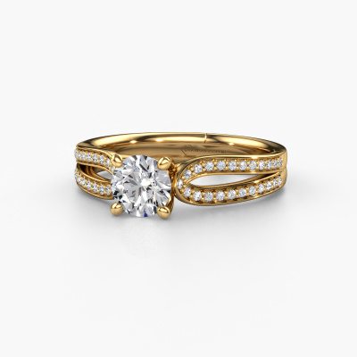 The ring shown above is called the Antonia rnd 2. We call this type of ring a pavé solitaire ring because it has one centre gemstone and a band that is also pave set with gemstones. The 14 Carat gold engagement ring is set with a round 0.70 crt lab grown diamond centre stone and the band is pave set with diamond gemstones. Each jewel is made just for you, with attention to detail and design.This traditional gold pavé solitaire engagement ring has an exquisite round lab grown diamond centre stone. To further accentuate the centre stone, the band is fully set with more diamonds. Its open prong setting allows light to strike the lab grown diamond from various angles and this adds sparkle to your lab grown diamond ring. The photo shown above depicts the goldsmith's carefully handcrafted details of the ring. The high positioning of the centre stone is truly eye-catching. The perfect engagement ring for the crown jewel of your life! After receiving your order, our goldsmiths will start the creative process of making your Antonia rnd 2 engagement ring. We don't keep stock. This is advantageous because these costs will not be passed on to you. Therefore, we can offer jewellery at exceptionally low prices.Have you found a specific engagement ring somewhere which you would like to give to your loved one? Please feel free to express your wishes to our jewel designers because we would be honoured to turn your design into a traditional engagement ring. You can follow the development of your ring design because we use 3D drawings. This gives you a realistic preview of how your design will look. You can also preorder a dummy. A dummy is a plastic ring, which can be shaped according your ring design. You can try it on and check if its width and size are suitable for you. We will gladly send you a non-binding offer, based on a fair price/ quality ratio. It will amaze you, considering the quality of the ring and gemstones.To make it easier for you, we offer a 30 day return policy. Check our terms and conditions.