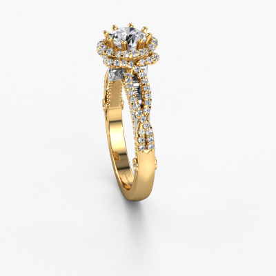 This 14 Carat gold ring is called Lysanne and is set with 1.15 crt lab grown diamond. This filigree gold engagement ring is a true work of art! A beautifully adorned design of intricate wires. With dedication, patience and the utmost precision, our expert goldsmith will design a ring just for you. The adornment of small wiring is crafted to perfection by hand. It's a lengthy process which includes welding, crafting and polishing until our Goldsmiths are completely satisfied with the result: a perfect eye-catching ring that makes her shine with delight. Therefore the vintage filigree engagement ring is an extraordinary gift to bestow upon the love of your life. A handmade one-of-a-kind personalized ring, to be given to that special someone on that special moment when you pop the question. Isn't that wonderful? This piece of jewellery is made by a team of passionate goldsmiths and jewel designers. This will make your crown jewel truly eye-catching.After receiving your order, our goldsmiths will start the creative process of making your Lysanne engagement ring. We don't keep stock. This is advantageous because these costs will not be passed on to you. Therefore, we can offer jewellery at exceptionally low prices.Have you found a specific engagement ring somewhere which you would like to give to your loved one? Please feel free to express your wishes to our jewel designers because we would be honoured to turn your design into a vintage engagement ring. You can follow the development of your ring design because we use 3D drawings. This gives you a realistic preview of how your design will look. You can also preorder a dummy. A dummy is a plastic ring, which can be shaped according your ring design. You can try it on and check if its width and size are suitable for you. We will gladly send you a non-binding offer, based on a fair price/ quality ratio. It will amaze you, considering the quality of the ring and gemstones.To make it easier for you, we offer a 30 day return policy. Check our terms and conditions.
