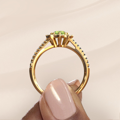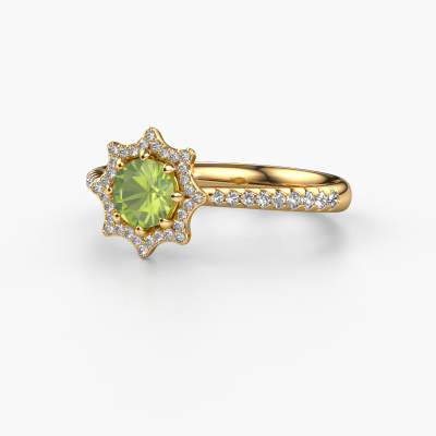 This 14 Carat gold ring is called Zena and is set with peridot. An extraordinary gold vintage ring. One that will surely make the love of your life shine like a diamond! That is what we hope to achieve. This fantasy engagement ring is set with