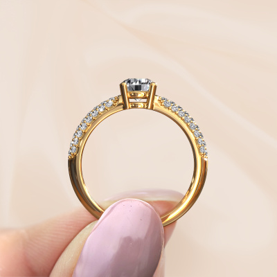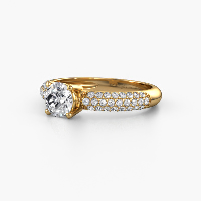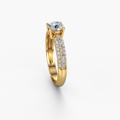 The ring shown above is called Marjan. We call this a pave ring. The smaller gemstones of pave ring are set in a close row which gives it an extra shine. This 14 Carat gold ring is set with diamonds 1.069 crt. The ring shown above is called Marjan. We call this a pave ring. The smaller gemstones of pave ring are set in a close row which gives it an extra shine. Which emotion would you like to convey when you get down on one knee for her? This gold engagement ring is pave set with stunning diamonds to represent your everlasting love. The gemstones are carefully hand selected and set by our goldsmith. The unique reflection of light on the ring can only be captured if the diamonds are set in a perfect line. During the crafting and polishing of the jewellery, light fall is constantly monitored, until the expert goldsmith is satisfied with the result. A ring designed just for you to make your loved one shine bright like a diamond. Because there is only one special person fit to wear such a unique ring! With this meaningful piece of art, the symbol of infinity, you will prove your undying love for her and that you want to share the rest of your life with no one else. How will she be able to resist? This piece of jewellery is made just for you, with attention to detail and design.By using our modern techniques, we can design and customize the finest quality jewels with the utmost care for you. Our engagement rings are always priced 30 percent lower than other jewellers. We make engagement rings to order so we don't have to maintain a large stock. If you have a certain budget, we are more than happy to advice you accordingly.Have you found a specific engagement ring somewhere which you would like to give to your loved one? Please feel free to express your wishes to our jewel designers because we would be honoured to turn your design into a exclusive engagement ring. You can follow the development of your ring design because we use 3D drawings. This gives you a realistic preview of how your design will look. You can also preorder a dummy. A dummy is a plastic ring, which can be shaped according your ring design. You can try it on and check if its width and size are suitable for you. We will gladly send you a non-binding offer, based on a fair price/ quality ratio. It will amaze you, considering the quality of the ring and gemstones.To make it easier for you, we offer a 30 day return policy. Check our terms and conditions.