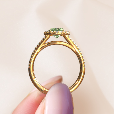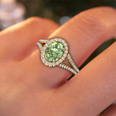 This 14 Carat gold ring is called Verla ovl 2 and is set with 8x6 mm green lab grown diamond. Does your girlfriend fancy exclusive jewellery? Or would you like to show her that she deserves the finest jewellery? This gold ring is pure craftsmanship, love and passion combined with the latest techniques coming together in perfect harmony. It requires a keen eye, patience and a skilful hand to mould this ring into perfection. Just the job for our expert goldsmith! The green lab grown diamonds set gemstones gives this gold ring an extra glamorous appearance. Customize the style of the split band engagement ring to her liking with a wide variety of precious metals and gemstones which you select. That is how you create a unique ring for the most exclusive woman in your life! This jewel is made by a team of passionate goldsmiths and jewel designers. This will make your crown jewel truly eye-catching.By using our modern techniques, we can design and customize the finest quality jewels with the utmost care for you. Our engagement rings are always priced 30 percent lower than other jewellers. We make engagement rings to order so we don't have to maintain a large stock. If you have a certain budget, we are more than happy to advice you accordingly.Our team adds new designs to our online collection daily. Our designers and goldsmiths work together in creating the best design. We strive to offer a diverse collection of jewels. Perhaps you have a specific jewel design in mind. One you came across somewhere. Please contact us for a free consultation. We will make you an offer, based on a fair price/ quality ratio, that will baffle you.To make it easier for you, we offer a 30 day return policy. Check our terms and conditions.