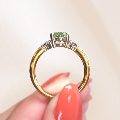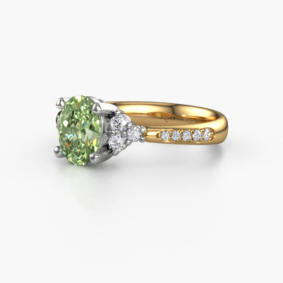 This 14 Carat gold ring is called Aleida OVL 2 and is set with 8x6 mm green lab grown diamond. Does your girlfriend fancy exclusive jewellery? Or would you like to show her that she deserves the finest jewellery? This gold ring is pure craftsmanship, love and passion combined with the latest techniques coming together in perfect harmony. It requires a keen eye, patience and a skilful hand to mould this ring into perfection. Just the job for our expert goldsmith! The green lab grown diamonds set gemstones gives this gold ring an extra glamorous appearance. Customize the style of the charming engagement ring to her liking with a wide variety of precious metals and gemstones which you select. That is how you create a unique ring for the most exclusive woman in your life! This jewel is made just for you by our master goldsmiths in our own studio.By using a combination of the latest modern techniques, combined with ancient crafting, we can make all our engagement rings in our own studio. Each jewel is made to order. This is advantageous because we can offer you a price you won't find anywhere else.Do you have a specific ring in mind? One you came across somewhere. Please feel free to tell us your wishes and we will turn your design into a unique engagement ring. You can follow the development of your ring design because we use 3D drawings. This gives you a realistic preview of your design. We will gladly send you a non-binding offer, based on a fair price/ quality ratio. It will amaze you.To make it easier for you, we offer a 30 day return policy. Check our terms and conditions.