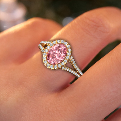 This 14 Carat gold ring is called Verla ovl 2 and is set with 8x6 mm pink lab grown diamond. Does your girlfriend fancy exclusive jewellery? Or would you like to show her that she deserves the finest jewellery? This gold ring is pure craftsmanship, love and passion combined with the latest techniques coming together in perfect harmony. It requires a keen eye, patience and a skilful hand to mould this ring into perfection. Just the job for our expert goldsmith! The pink lab grown diamonds set gemstones gives this gold ring an extra glamorous appearance. Customize the style of the split band engagement ring to her liking with a wide variety of precious metals and gemstones which you select. That is how you create a unique ring for the most exclusive woman in your life! This jewel is made by a team of passionate goldsmiths and jewel designers. This will make your crown jewel truly eye-catching.By using our modern techniques, we can design and customize the finest quality jewels with the utmost care for you. Our engagement rings are always priced 30 percent lower than other jewellers. We make engagement rings to order so we don't have to maintain a large stock. If you have a certain budget, we are more than happy to advice you accordingly.Our team adds new designs to our online collection daily. Our designers and goldsmiths work together in creating the best design. We strive to offer a diverse collection of jewels. Perhaps you have a specific jewel design in mind. One you came across somewhere. Please contact us for a free consultation. We will make you an offer, based on a fair price/ quality ratio, that will baffle you.To make it easier for you, we offer a 30 day return policy. Check our terms and conditions.