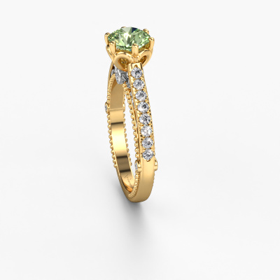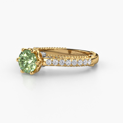 This 14 Carat gold ring is called Venita and is set with green lab grown diamond. An extraordinary gold vintage ring. One that will surely make the love of your life shine like a diamond! That is what we hope to achieve. This vintage engagement ring is set with exquisite green lab grown diamonds. Whichever gemstone you choose from our selection, is up to you. The gemstone is selected with great care because we believe your engagement ring must be adorned with nothing but the most beautiful gemstone. Wouldn't you agree? Our expert goldsmith will design your ring in our own artisan studio, where the green lab grown diamond will be set with great precision. The ring will then be polished till it is absolutely perfect. Nothing but the best for the love of your life! This jewel is made just for you by our master goldsmiths in our own studio.After receiving your order, our goldsmiths will passionately start the creative process of making your engagement ring in our own studio. Because we don't have a big stockpile, these costs will not be passed on to you. Our pricing is proof of that! We offer top quality jewels at lowest price, guaranteed.Our team adds new designs to our online collection daily. Our designers and goldsmiths work together in creating the best design. We strive to offer a diverse collection of jewels. Perhaps you have a specific jewel design in mind. One you came across somewhere. Please contact us for a free consultation. We will make you an offer, based on a fair price/ quality ratio, that will baffle you.To make it easier for you, we offer a 30 day return policy. Check our terms and conditions.