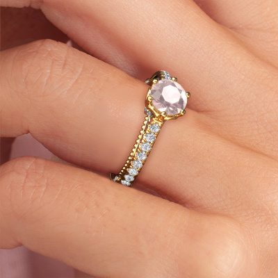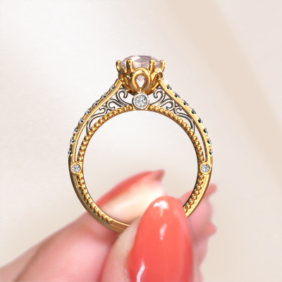 This 14 Carat gold ring is called Venita and is set with morganite champagne. An extraordinary gold vintage ring. One that will surely make the love of your life shine like a diamond! That is what we hope to achieve. This vintage engagement ring is set with exquisite morganite champagne. Whichever gemstone you choose from our selection, is up to you. The gemstone is selected with great care because we believe your engagement ring must be adorned with nothing but the most beautiful gemstone. Wouldn't you agree? Our expert goldsmith will design your ring in our own artisan studio, where the morganite champagne will be set with great precision. The ring will then be polished till it is absolutely perfect. Nothing but the best for the love of your life! This jewel is made just for you by our master goldsmiths in our own studio.After receiving your order, our goldsmiths will passionately start the creative process of making your engagement ring in our own studio. Because we don't have a big stockpile, these costs will not be passed on to you. Our pricing is proof of that! We offer top quality jewels at lowest price, guaranteed.Our team adds new designs to our online collection daily. Our designers and goldsmiths work together in creating the best design. We strive to offer a diverse collection of jewels. Perhaps you have a specific jewel design in mind. One you came across somewhere. Please contact us for a free consultation. We will make you an offer, based on a fair price/ quality ratio, that will baffle you.To make it easier for you, we offer a 30 day return policy. Check our terms and conditions.