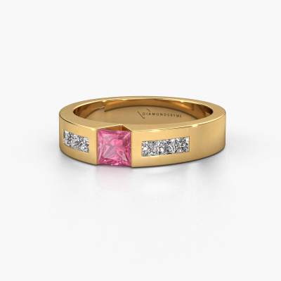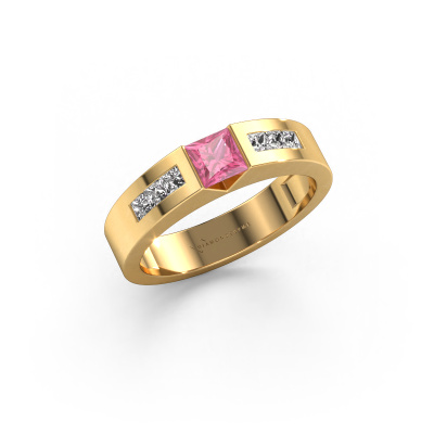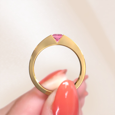 This 14 Carat gold ring is called Arlena 2 and is set with 4 mm pink sapphire. This modern gold Engagement ring is a true masterpiece! Our expert goldsmith uses special techniques during crafting of this tension set ring to make sure the pink sapphire of this gold ring is fixed properly. The effect is that light fall reflects beautifully on the gemstone, which gives the ring its maximum shine and glamorous appearance. The result is a unique ring, with a trendy appearance, passionately handcrafted to perfection by our artisan goldsmith. A one-of-a-kind ring, designed for the love of your life! This jewel is unique in every way! Simply customize to your likingBy using our modern techniques, we can design and customize the finest quality jewels with the utmost care for you. Our Engagement rings are always priced 30 percent lower than other jewellers. We make Engagement rings to order so we don't have to maintain a large stock. If you have a certain budget, we are more than happy to advice you accordingly.Have you found a specific Engagement ring somewhere which you would like to give to your loved one? Please feel free to express your wishes to our jewel designers because we would be honoured to turn your design into a modern Engagement ring. You can follow the development of your ring design because we use 3D drawings. This gives you a realistic preview of how your design will look. You can also preorder a dummy. A dummy is a plastic ring, which can be shaped according your ring design. You can try it on and check if its width and size are suitable for you. We will gladly send you a non-binding offer, based on a fair price/ quality ratio. It will amaze you, considering the quality of the ring and gemstones.To make it easier for you, we offer a 30 day return policy. Check our terms and conditions.