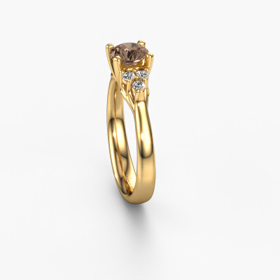 This 14 Carat gold ring is called Monika RND and is set with 0.80 crt brown diamond. Does your girlfriend fancy exclusive jewellery? Or would you like to show her that she deserves the finest jewellery? This gold ring is pure craftsmanship, love and passion combined with the latest techniques coming together in perfect harmony. It requires a keen eye, patience and a skilful hand to mould this ring into perfection. Just the job for our expert goldsmith! The brown diamonds set gemstones gives this gold ring an extra glamorous appearance. Customize the style of the ajour engagement ring to her liking with a wide variety of precious metals and gemstones which you select. That is how you create a unique ring for the most exclusive woman in your life! This jewel is made with passion and love by one of our master goldsmiths.Are you on a budget? Please feel free to contact us, so we can go discuss your options. We offer our engagement rings at guaranteed best price, because we make them to order. You won't find such a price anywhere else!Have you found a specific engagement ring somewhere which you would like to give to your loved one? Please feel free to express your wishes to our jewel designers because we would be honoured to turn your design into a classic engagement ring. You can follow the development of your ring design because we use 3D drawings. This gives you a realistic preview of how your design will look. You can also preorder a dummy. A dummy is a plastic ring, which can be shaped according your ring design. You can try it on and check if its width and size are suitable for you. We will gladly send you a non-binding offer, based on a fair price/ quality ratio. It will amaze you, considering the quality of the ring and gemstones.To make it easier for you, we offer a 30 day return policy. Check our terms and conditions.