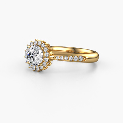 The ring shown above is called the Tilly RND 2. We call this type of ring a cluster ring, the centre gemstone is surrounded by smaller sized stones. This 14 Carat gold version is set with a 0.70 crt round diamond centre stone, embraced by smaller diamonds. If you look at this gold cluster engagement ring, you might get the impression that its smaller sized stones collide with the bigger diamond, so it is shaped like a flower. Therefore this engagement ring is also known as the flower ring. Our artisan goldsmiths get the job done. Each individual stone is carefully set by hand. During manufacturing, light fall is constantly monitored to make sure the special cluster effect is still visible. In the end you get the perfect engagement ring with a radiant diamond gemstone centrepiece. You can imagine the effect of a ring of such significance when you give tot the love of your life on her special day to shine. After receiving your order, our goldsmiths will start the creative process of making your Tilly RND 2 engagement ring. We don't keep stock. This is advantageous because these costs will not be passed on to you. Therefore, we can offer jewellery at exceptionally low prices.Our team adds new designs to our online collection daily. Our designers and goldsmiths work together in creating the best design. We strive to offer a diverse collection of jewels. Perhaps you have a specific jewel design in mind. One you came across somewhere. Please contact us for a free consultation. We will make you an offer, based on a fair price/ quality ratio, that will baffle you.To make it easier for you, we offer a 30 day return policy. Check our terms and conditions.
