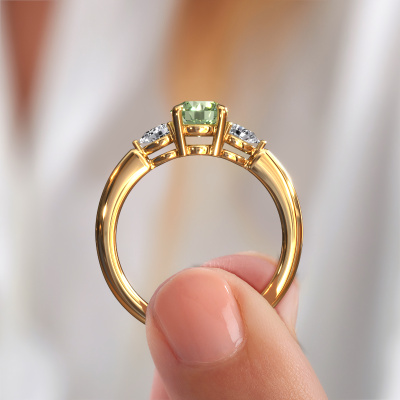This 14 Carat gold ring is called Chanou RND and is set with 6 mm green lab grown diamond. Does your girlfriend fancy exclusive jewellery? Or would you like to show her that she deserves the finest jewellery? This gold ring is pure craftsmanship, love and passion combined with the latest techniques coming together in perfect harmony. It requires a keen eye, patience and a skilful hand to mould this ring into perfection. Just the job for our expert goldsmith! The green lab grown diamonds set gemstones gives this gold ring an extra glamorous appearance. Customize the style of the charming engagement ring to her liking with a wide variety of precious metals and gemstones which you select. That is how you create a unique ring for the most exclusive woman in your life! This jewel is made to shine bright around your finger. Each jewel is hand made with love by our goldsmiths.By using a combination of the latest modern techniques, combined with ancient crafting, we can make all our engagement rings in our own studio. Each jewel is made to order. This is advantageous because we can offer you a price you won't find anywhere else.Our team adds new designs to our online collection daily. Our designers and goldsmiths work together in creating the best design. We strive to offer a diverse collection of jewels. Perhaps you have a specific jewel design in mind. One you came across somewhere. Please contact us for a free consultation. We will make you an offer, based on a fair price/ quality ratio, that will baffle you.To make it easier for you, we offer a 30 day return policy. Check our terms and conditions.