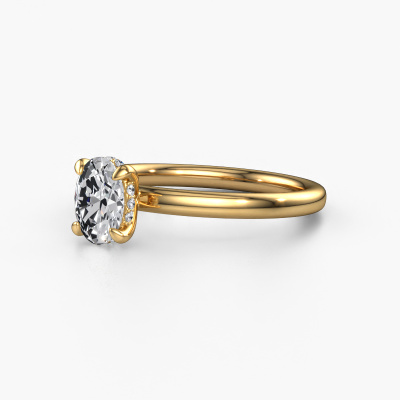 This 14 Carat gold ring is called Simone OVL 2 and is set with diamond. Are you in the market for a unique gold engagement ring with a trendy appearance? Then this ring is perfect for you. Simply customize to your or her liking. This contemporary graceful engagement ring is set with exquisite diamond. It has been carefully selected because your engagement ring must be adorned with nothing but the most beautiful gemstone. Our expert goldsmith will create your ring in our own studio where the diamond will be set with great care. The ring will then be polished to perfection to give it that extra sparkle. The perfect ring for your significant other! Because we design and deliver our own rings, we can offer you a engagement ring at a price you won't find anywhere else. A ring is made to order, which helps prevent excess supplies, so we can make you a great price offer. We understand it feels risky, buying your engagement ring online, but we will gladly assist in the designing process, taking your budget into consideration.Do you have a specific ring in mind? One you came across somewhere. Please feel free to tell us your wishes and we will turn your design into a unique engagement ring. You can follow the development of your ring design because we use 3D drawings. This gives you a realistic preview of your design. We will gladly send you a non-binding offer, based on a fair price/ quality ratio. It will amaze you.To make it easier for you, we offer a 30 day return policy. Check our terms and conditions.