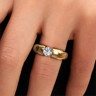 This 14 Carat gold ring is called Amelia and is set with lab grown diamond. Are you in the market for a unique gold engagement ring with a trendy appearance? Then this ring is perfect for you. Simply customize to your or her liking. This modern orb shaped engagement ring is set with exquisite lab grown diamond. It has been carefully selected because your engagement ring must be adorned with nothing but the most beautiful gemstone. Our expert goldsmith will create your ring in our own studio where the lab grown diamond will be set with great care. The ring will then be polished to perfection to give it that extra sparkle. The perfect ring for your significant other! By using a combination of the latest modern techniques, combined with ancient crafting, we can make all our engagement rings in our own studio. Each jewel is made to order. This is advantageous because we can offer you a price you won't find anywhere else.Do you have a specific ring in mind? One you came across somewhere. Please feel free to tell us your wishes and we will turn your design into a unique engagement ring. You can follow the development of your ring design because we use 3D drawings. This gives you a realistic preview of your design. We will gladly send you a non-binding offer, based on a fair price/ quality ratio. It will amaze you.To make it easier for you, we offer a 30 day return policy. Check our terms and conditions.