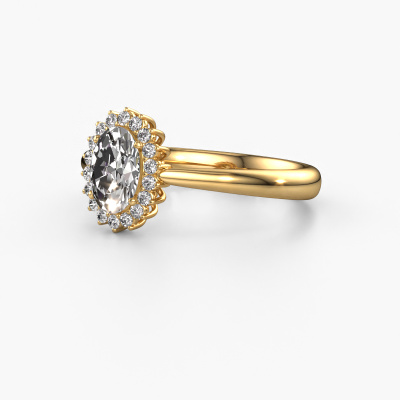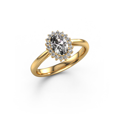 The ring shown above is called the Tilly ovl 1. We call this type of ring a cluster ring, the centre gemstone is surrounded by smaller sized stones. This 14 Carat gold version is set with a 0.70 crt oval lab grown diamond centre stone, embraced by smaller lab-grown diamonds. The classic gold cluster engagement ring stands out because of its shape. Together, the smaller and bigger sized lab grown diamond gemstones form a flower and they appear to collide into one big sparkling gem. This classic engagement ring is also known as the flower ring. Our expert Goldsmiths make sure the smaller lab-grown diamonds stones are set identically so there is no light interference in the lab grown diamond but unity instead. With perfect precision and a skilful hand each lab grown diamond is set in the ring. During manufacturing, it is constantly monitored to make sure light reflects flawlessly. This results in a unique engagement ring, with a radiant lab grown diamond at its centre. A lovely, meaningful gift to bestow upon the love of your life. By using a combination of the latest modern techniques, combined with ancient crafting, we can make all our engagement rings in our own studio. Each jewel is made to order. This is advantageous because we can offer you a price you won't find anywhere else.Do you have a specific ring in mind? One you came across somewhere. Please feel free to tell us your wishes and we will turn your design into a unique engagement ring. You can follow the development of your ring design because we use 3D drawings. This gives you a realistic preview of your design. We will gladly send you a non-binding offer, based on a fair price/ quality ratio. It will amaze you.To make it easier for you, we offer a 30 day return policy. Check our terms and conditions.