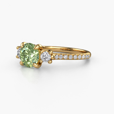 This 14 Carat gold ring is called Jesica and is set with 6.8 mm green lab grown diamond. What is it that makes your relationship unique? What is it about her that makes you want to bend down on one knee? The unique bond between the two of you is emphasized by an equally unique ring. A one of a kind graceful 3-stone engagement ring made especially for her. That is why this classic ring fits her like a glove. Each specific detail of this graceful gold green lab grown diamond set engagement ring is hand-picked, crafted and polished by our expert goldsmith. The result is an exquisite ring, unique and perfectly crafted to perfection. That is what our expert Goldsmiths strive for. This jewel is made just for you, with attention to detail and design.After receiving your order, our goldsmiths will passionately start the creative process of making your engagement ring in our own studio. Because we don't have a big stockpile, these costs will not be passed on to you. Our pricing is proof of that! We offer top quality jewels at lowest price, guaranteed.Different styles of new rings are made daily by our team. Perhaps you have found a 3-stone engagement ring somewhere. One you would like to give to your loved one. Please feel free to share your thoughts and design with our jewel designers. We would love to turn your design into a classic engagement ring. You can follow the development of your ring design because we use very detailed 3D drawings. On top of that, you can order a dummy of the design. A dummy is a plastic ring, which can be shaped according your ring design. You can try it on and check if the engagement ring is up to standard. We will gladly send you a non-binding offer, based on a fair price/ quality ratio. The offer will baffle you, considering the quality of the ring and gemstones.To make it easier for you, we offer a 30 day return policy. Check our terms and conditions.