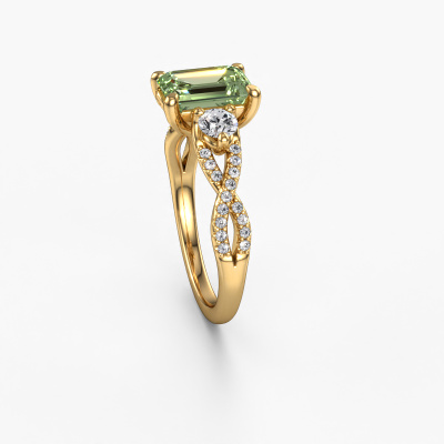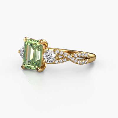 This 14 Carat gold ring is called Marilou EME and is set with green lab grown diamond. How would you describe the style of the love of your life? Does she have a unique sense of style? This stunning split band gold engagement ring can be custom-made to your own or her liking. Our green lab grown diamonds gemstones have been carefully selected because we believe your luxury engagement ring must be adorned with nothing but the most beautiful gemstone. Don't you agree? This jewel is made to shine bright around your finger. Each jewel is hand made with love by our goldsmiths.After receiving your order, our goldsmiths will start the creative process of making your Marilou EME engagement ring. We don't keep stock. This is advantageous because these costs will not be passed on to you. Therefore, we can offer jewellery at exceptionally low prices.Do you have a specific ring in mind? One you came across somewhere. Please feel free to tell us your wishes and we will turn your design into a unique engagement ring. You can follow the development of your ring design because we use 3D drawings. This gives you a realistic preview of your design. We will gladly send you a non-binding offer, based on a fair price/ quality ratio. It will amaze you.To make it easier for you, we offer a 30 day return policy. Check our terms and conditions.