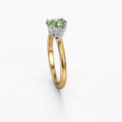 This 14 Carat gold ring is called Felipa OVL and is set with green lab grown diamond. How would you describe the style of the love of your life? Does she have a unique sense of style? This stunning graceful gold engagement ring can be custom-made to your own or her liking. Our green lab grown diamonds gemstones have been carefully selected because we believe your traditional engagement ring must be adorned with nothing but the most beautiful gemstone. Don't you agree? This jewel is made just for you by our master goldsmiths in our own studio.By using our modern techniques, we can design and customize the finest quality jewels with the utmost care for you. Our engagement rings are always priced 30 percent lower than other jewellers. We make engagement rings to order so we don't have to maintain a large stock. If you have a certain budget, we are more than happy to advice you accordingly.Have you found a specific engagement ring somewhere which you would like to give to your loved one? Please feel free to express your wishes to our jewel designers because we would be honoured to turn your design into a traditional engagement ring. You can follow the development of your ring design because we use 3D drawings. This gives you a realistic preview of how your design will look. You can also preorder a dummy. A dummy is a plastic ring, which can be shaped according your ring design. You can try it on and check if its width and size are suitable for you. We will gladly send you a non-binding offer, based on a fair price/ quality ratio. It will amaze you, considering the quality of the ring and gemstones.To make it easier for you, we offer a 30 day return policy. Check our terms and conditions.