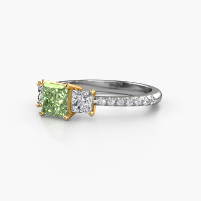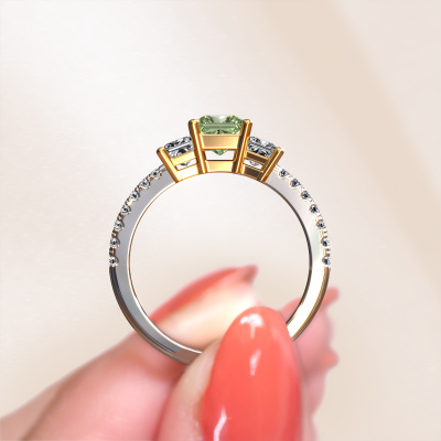 This 14 Carat white gold ring is called Dorla and is set with 5 mm green lab grown diamond. What is it that makes your relationship unique? What is it about her that makes you want to bend down on one knee? The unique bond between the two of you is emphasized by an equally unique ring. A one of a kind micro pave 3-stone engagement ring made especially for her. That is why this exclusive ring fits her like a glove. Each specific detail of this micro pave white gold green lab grown diamond set engagement ring is hand-picked, crafted and polished by our expert goldsmith. The result is an exquisite ring, unique and perfectly crafted to perfection. That is what our expert Goldsmiths strive for. This jewel is unique in every way! Simply customize to your liking,After receiving your order, our goldsmiths will passionately start the creative process of making your engagement ring in our own studio. Because we don't have a big stockpile, these costs will not be passed on to you. Our pricing is proof of that! We offer top quality jewels at lowest price, guaranteed.Do you have a specific ring in mind? One you came across somewhere. Please feel free to tell us your wishes and we will turn your design into a unique engagement ring. You can follow the development of your ring design because we use 3D drawings. This gives you a realistic preview of your design. We will gladly send you a non-binding offer, based on a fair price/ quality ratio. It will amaze you.To make it easier for you, we offer a 30 day return policy. Check our terms and conditions.