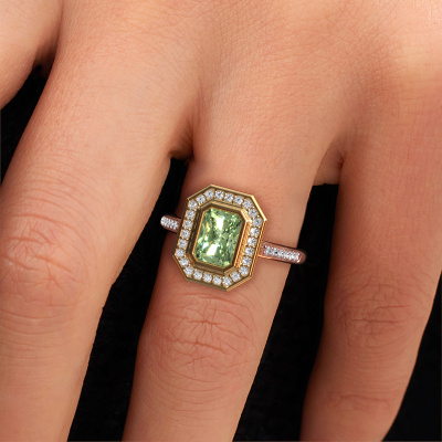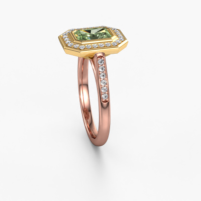 This 14 Carat rose gold ring is called Noud 2 RAD and is set with green lab grown diamond. How would you describe the style of the love of your life? Does she have a unique sense of style? This stunning special rose gold engagement ring can be custom-made to your own or her liking. Our green lab grown diamonds gemstones have been carefully selected because we believe your exclusive engagement ring must be adorned with nothing but the most beautiful gemstone. Don't you agree? This jewel is made just for you by our master goldsmiths in our own studio.By using a combination of the latest modern techniques, combined with ancient crafting, we can make all our engagement rings in our own studio. Each jewel is made to order. This is advantageous because we can offer you a price you won't find anywhere else.Our designers and goldsmiths work together each day, creating new jewels. Perhaps you have found a nice exclusive engagement ring somewhere, which can be used to customize your unique ring. Please feel free to contact us. We will make you an offer, based on a fair price/ quality ratio, which will amaze you.To make it easier for you, we offer a 30 day return policy. Check our terms and conditions.