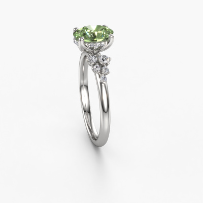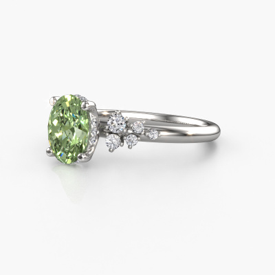 This platinum ring is called Emma OVL and is set with green lab grown diamond. How would you describe the style of the love of your life? Does she have a unique sense of style? This stunning sublime platinum engagement ring can be custom-made to your own or her liking. Our green lab grown diamonds gemstones have been carefully selected because we believe your fantasy engagement ring must be adorned with nothing but the most beautiful gemstone. Don't you agree? This jewel is made by a team of passionate goldsmiths and jewel designers. This will make your crown jewel truly eye-catching.By using a combination of the latest modern techniques, combined with ancient crafting, we can make all our engagement rings in our own studio. Each jewel is made to order. This is advantageous because we can offer you a price you won't find anywhere else.Different styles of new rings are made daily by our team. Perhaps you have found a pavé solitaire engagement ring somewhere. One you would like to give to your loved one. Please feel free to share your thoughts and design with our jewel designers. We would love to turn your design into a fantasy engagement ring. You can follow the development of your ring design because we use very detailed 3D drawings. On top of that, you can order a dummy of the design. A dummy is a plastic ring, which can be shaped according your ring design. You can try it on and check if the engagement ring is up to standard. We will gladly send you a non-binding offer, based on a fair price/ quality ratio. The offer will baffle you, considering the quality of the ring and gemstones.To make it easier for you, we offer a 30 day return policy. Check our terms and conditions.