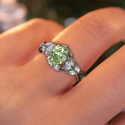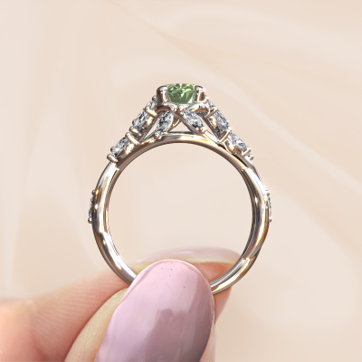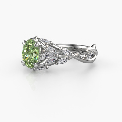 This 14 Carat white gold ring is called Samantha OVL and is set with 7,5x5,5 mm green lab grown diamond. What is it that makes your relationship unique? What is it about her that makes you want to bend down on one knee? The unique bond between the two of you is emphasized by an equally unique ring. A one of a kind special pavé solitaire engagement ring made especially for her. That is why this unique ring fits her like a glove. Each specific detail of this special white gold green lab grown diamond set engagement ring is hand-picked, crafted and polished by our expert goldsmith. The result is an exquisite ring, unique and perfectly crafted to perfection. That is what our expert Goldsmiths strive for. This jewel is made just for you by our master goldsmiths in our own studio.After receiving your order, our goldsmiths will passionately start the creative process of making your engagement ring in our own studio. Because we don't have a big stockpile, these costs will not be passed on to you. Our pricing is proof of that! We offer top quality jewels at lowest price, guaranteed.Our team adds new designs to our online collection daily. Our designers and goldsmiths work together in creating the best design. We strive to offer a diverse collection of jewels. Perhaps you have a specific jewel design in mind. One you came across somewhere. Please contact us for a free consultation. We will make you an offer, based on a fair price/ quality ratio, that will baffle you.To make it easier for you, we offer a 30 day return policy. Check our terms and conditions.