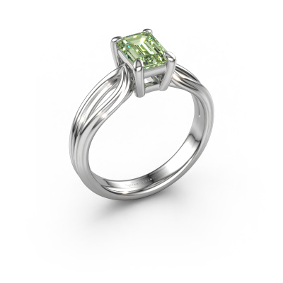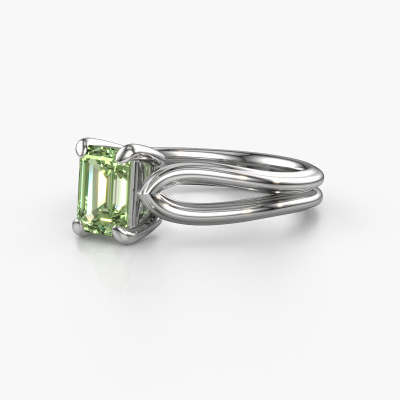 The ring shown above is called the Antonia eme 1, we call this a solitaire ring because it contains a single gemstone. The engagement ring is made in platinum and has a emerald cut green lab grown diamond of 7x5 mm. The cool thing about our configurator is that you can compile your own piece of jewellery, into a completely personalized one. This solitaire ring is crafted in the precious metals platinum with platinum, but of course you are free to pick your own colours. Each piece of jewellery is created to add sparkle to your finger, each jewel is lovingly made by hand by our goldsmiths.The solitaire ring is a special type of engagement ring. Its open prong setting allows light to strike the gemstone from various angles. This fantasy engagement ring is a stunning eye-catcher because of the high positioning of the gemstone. In order for you to commemorate your proposal with a unique ring, we carefully adorn this solitaire ring by hand. The love of your life deserves nothing but the best. Because we design and deliver our own rings, we can offer you a engagement ring at a price you won't find anywhere else. A ring is made to order, which helps prevent excess supplies, so we can make you a great price offer. We understand it feels risky, buying your engagement ring online, but we will gladly assist in the designing process, taking your budget into consideration.Our designers and goldsmiths work together each day, creating new jewels. Perhaps you have found a nice fantasy engagement ring somewhere, which can be used to customize your unique ring. Please feel free to contact us. We will make you an offer, based on a fair price/ quality ratio, which will amaze you.To make it easier for you, we offer a 30 day return policy. Check our terms and conditions.