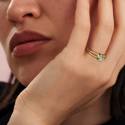 This 14 Carat gold ring is called Antonia rad 1 and is set with green lab grown diamond. How would you describe the style of the love of your life? Does she have a unique sense of style? This stunning split band gold engagement ring can be custom-made to your own or her liking. Our green lab grown diamonds gemstones have been carefully selected because we believe your fantasy engagement ring must be adorned with nothing but the most beautiful gemstone. Don't you agree? This jewel is made with passion and love by one of our master goldsmiths.Are you on a budget? Please feel free to contact us, so we can go discuss your options. We offer our engagement rings at guaranteed best price, because we make them to order. You won't find such a price anywhere else!Our team adds new designs to our online collection daily. Our designers and goldsmiths work together in creating the best design. We strive to offer a diverse collection of jewels. Perhaps you have a specific jewel design in mind. One you came across somewhere. Please contact us for a free consultation. We will make you an offer, based on a fair price/ quality ratio, that will baffle you.To make it easier for you, we offer a 30 day return policy. Check our terms and conditions.