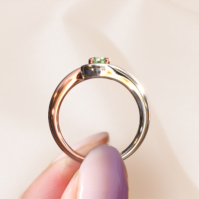 In your eyes, no one else compares to her. She is one in a million, unlike anyone else and pure? These qualities are emphasized perfectly by our modern rose gold solitaire green lab grown diamond ring. This green lab grown diamond is carefully selected by our keen artisan goldsmiths. It equals the unique qualities of the love of your life. There is no better way to memorialize your proposal than this symbol of true love. The ring shown above is called the Linn, we call this a solitaire ring because it contains a single gemstone. The engagement ring is made in 14 Carat rose gold and has a round green lab grown diamond of 4.2 mm. Each piece of jewellery is unique in every way! Simply customize to your liking