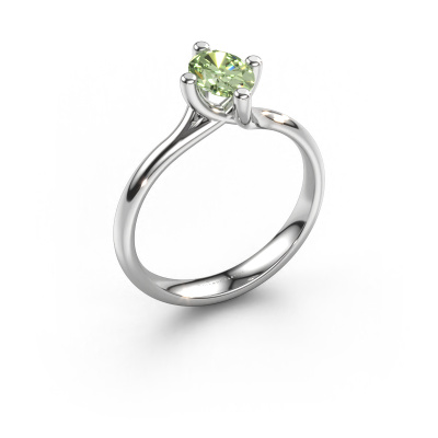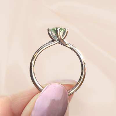 In your eyes, no one else compares to her. She is one in a million, unlike anyone else and pure? These qualities are emphasized perfectly by our modern white gold solitaire green lab grown diamond ring. This green lab grown diamond is carefully selected by our keen artisan goldsmiths. It equals the unique qualities of the love of your life. There is no better way to memorialize your proposal than this symbol of true love. The ring shown above is called the Dewi Oval, we call this a solitaire ring because it contains a single gemstone. The engagement ring is made in 14 Carat white gold and has a oval green lab grown diamond of 7x5 mm. Each piece of jewellery is made with passion and love by one of our master goldsmiths.Are you on a budget? Please feel free to contact us, so we can go discuss your options. We offer our engagement rings at guaranteed best price, because we make them to order. You won't find such a price anywhere else!Do you have a specific ring in mind? One you came across somewhere. Please feel free to tell us your wishes and we will turn your design into a unique engagement ring. You can follow the development of your ring design because we use 3D drawings. This gives you a realistic preview of your design. We will gladly send you a non-binding offer, based on a fair price/ quality ratio. It will amaze you.To make it easier for you, we offer a 30 day return policy. Check our terms and conditions.