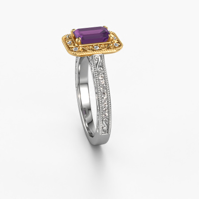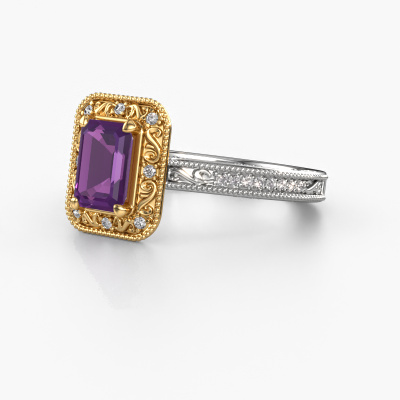 This 14 Carat white gold ring is called Alice EME and is set with 7x5 mm amethyst. An extraordinary white gold vintage ring. One that will surely make the love of your life shine like a diamond! That is what we hope to achieve. This vintage Engagement ring is set with exquisite amethyst. Whichever gemstone you choose from our selection, is up to you. The gemstone is selected with great care because we believe your pearl edges Engagement ring must be adorned with nothing but the most beautiful gemstone. Wouldn't you agree? Our expert goldsmith will design your ring in our own crafting studio, where the amethyst will be set with great precision. The ring will then be polished till it shines perfectly. Nothing but the best for the love of your life! This jewel is made just for you by our master goldsmiths in our own studio.By using a combination of the latest modern techniques, combined with ancient crafting, we can make all our Engagement rings in our own studio. Each jewel is made to order. This is advantageous because we can offer you a price you won't find anywhere else.Do you have a specific ring in mind? One you came across somewhere. Please feel free to tell us your wishes and we will turn your design into a unique Engagement ring. You can follow the development of your ring design because we use 3D drawings. This gives you a realistic preview of your design. We will gladly send you a non-binding offer, based on a fair price/ quality ratio. It will amaze you.To make it easier for you, we offer a 30 day return policy. Check our terms and conditions.