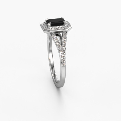 This platinum ring is called Pamela EME and is set with 1.127 crt black diamond. This exclusive platinum halo engagement ring is a true work of art! The ornaments are crafted with a lot of patience and great passion. In order to create this ring with great precision, this craft requires a keen eye and skilful hand. A challenge which ignites a fire in our expert goldsmith. The exquisite black diamonds are set in a special way so they stand out even more. This gives the ring an even more glamorous appearance. The split band engagement ring is actually unique on its own because of the gemstones which we carefully select especially for this ring. On top of that you select the precious metals which will be used to create a unique ring for the most extraordinary woman in your life! This jewel is made just for you, with attention to detail and design.Because we design and deliver our own rings, we can offer you a engagement ring at a price you won't find anywhere else. A ring is made to order, which helps prevent excess supplies, so we can make you a great price offer. We understand it feels risky, buying your engagement ring online, but we will gladly assist in the designing process, taking your budget into consideration.Our team adds new designs to our online collection daily. Our designers and goldsmiths work together in creating the best design. We strive to offer a diverse collection of jewels. Perhaps you have a specific jewel design in mind. One you came across somewhere. Please contact us for a free consultation. We will make you an offer, based on a fair price/ quality ratio, that will baffle you.To make it easier for you, we offer a 30 day return policy. Check our terms and conditions.