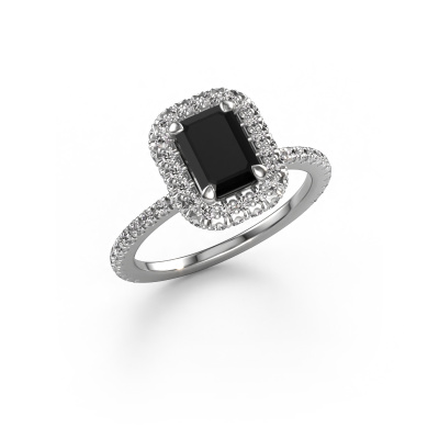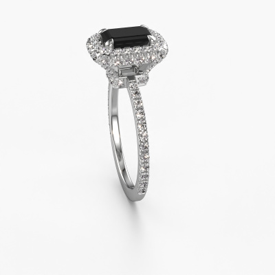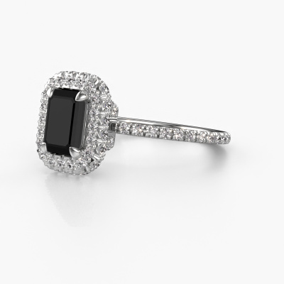 The ring shown above is called the Talitha EME. We call this type of ring a halo ring because it has one centre gemstone and a band that is also pave set with gemstones. The platinum engagement ring is set with a emerald cut 1.380 crt black diamond centre stone and the band is pave set with lab-grown diamonds. What makes this luxury platinum halo ring special are the smaller sized stones embracing the centre stone. This gorgeous engagement ring is called a halo ring because the smaller gemstones give the centre stone a halo of surrounding light. In order for the smaller stones to enhance the centre stone, they have to be placed so there is no interference of light. And that's when our expert goldsmiths come in. Each individual stone is carefully set in the ring by hand. During manufacturing, light fall is constantly monitored to make sure the special halo is still visible. In the end you get a unique engagement ring, with a black diamond of your choosing at its centre. You can imagine the effect of a ring of such significance when you give it to her on her special day to shine. By using our modern techniques, we can design and customize the finest quality jewels with the utmost care for you. Our engagement rings are always priced 30 percent lower than other jewellers. We make engagement rings to order so we don't have to maintain a large stock. If you have a certain budget, we are more than happy to advice you accordingly.Our team adds new designs to our online collection daily. Our designers and goldsmiths work together in creating the best design. We strive to offer a diverse collection of jewels. Perhaps you have a specific jewel design in mind. One you came across somewhere. Please contact us for a free consultation. We will make you an offer, based on a fair price/ quality ratio, that will baffle you.To make it easier for you, we offer a 30 day return policy. Check our terms and conditions.