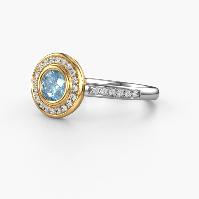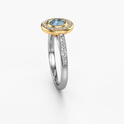 The ring shown above is called the Noud 2 RND. We call this type of ring a halo ring because it has one centre gemstone and a band that is also pave set with gemstones. The 14 Carat white gold engagement ring is set with a round 5 mm blue lab grown diamond centre stone and the band is pave set with diamonds. What makes this luxury white gold halo ring special are the smaller sized stones embracing the centre stone. This gorgeous engagement ring is called a halo ring because the smaller gemstones give the centre stone a halo of surrounding light. In order for the smaller stones to enhance the centre stone, they have to be placed so there is no interference of light. And that's when our expert goldsmiths come in. Each individual stone is carefully set in the ring by hand. During manufacturing, light fall is constantly monitored to make sure the special halo is still visible. In the end you get a unique engagement ring, with a blue lab grown diamond of your choosing at its centre. You can imagine the effect of a ring of such significance when you give it to her on her special day to shine. By using a combination of the latest modern techniques, combined with ancient crafting, we can make all our engagement rings in our own studio. Each jewel is made to order. This is advantageous because we can offer you a price you won't find anywhere else.Have you found a specific engagement ring somewhere which you would like to give to your loved one? Please feel free to express your wishes to our jewel designers because we would be honoured to turn your design into a luxury engagement ring. You can follow the development of your ring design because we use 3D drawings. This gives you a realistic preview of how your design will look. You can also preorder a dummy. A dummy is a plastic ring, which can be shaped according your ring design. You can try it on and check if its width and size are suitable for you. We will gladly send you a non-binding offer, based on a fair price/ quality ratio. It will amaze you, considering the quality of the ring and gemstones.To make it easier for you, we offer a 30 day return policy. Check our terms and conditions.