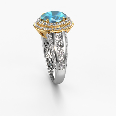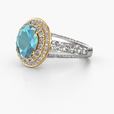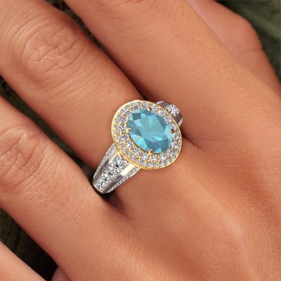 This 14 Carat white gold ring is called Nancie and is set with 9x7 mm blue topaz. This exclusive white gold halo engagement ring is a true work of art! The ornaments are crafted with a lot of patience and great passion. In order to create this ring with great precision, this craft requires a keen eye and skilful hand. A challenge which ignites a fire in our expert goldsmith. The exquisite blue topaz are set in a special way so they stand out even more. This gives the ring an even more glamorous appearance. The graceful engagement ring is actually unique on its own because of the gemstones which we carefully select especially for this ring. On top of that you select the precious metals which will be used to create a unique ring for the most extraordinary woman in your life! This jewel is created to add sparkle to your finger, each jewel is lovingly made by hand by our goldsmiths.Are you on a budget? Please feel free to contact us, so we can go discuss your options. We offer our engagement rings at guaranteed best price, because we make them to order. You won't find such a price anywhere else!Our designers and goldsmiths work together each day, creating new jewels. Perhaps you have found a nice classic engagement ring somewhere, which can be used to customize your unique ring. Please feel free to contact us. We will make you an offer, based on a fair price/ quality ratio, which will amaze you.To make it easier for you, we offer a 30 day return policy. Check our terms and conditions.