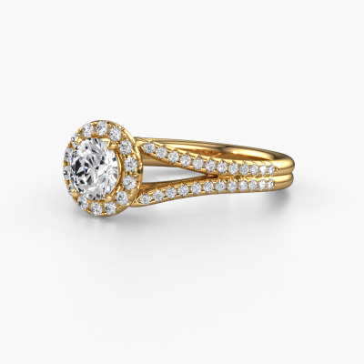 This 14 Carat gold ring is called Verla rnd 2 and is set with 1.08 crt diamond. This exclusive gold halo engagement ring is a true work of art! The ornaments are crafted with a lot of patience and great passion. In order to create this ring with great precision, this craft requires a keen eye and skilful hand. A challenge which ignites a fire in our expert goldsmith. The exquisite diamonds are set in a special way so they stand out even more. This gives the ring an even more glamorous appearance. The split band engagement ring is actually unique on its own because of the gemstones which we carefully select especially for this ring. On top of that you select the precious metals which will be used to create a unique ring for the most extraordinary woman in your life! This jewel is made just for you, with attention to detail and design.Because we design and deliver our own rings, we can offer you a engagement ring at a price you won't find anywhere else. A ring is made to order, which helps prevent excess supplies, so we can make you a great price offer. We understand it feels risky, buying your engagement ring online, but we will gladly assist in the designing process, taking your budget into consideration.Our team adds new designs to our online collection daily. Our designers and goldsmiths work together in creating the best design. We strive to offer a diverse collection of jewels. Perhaps you have a specific jewel design in mind. One you came across somewhere. Please contact us for a free consultation. We will make you an offer, based on a fair price/ quality ratio, that will baffle you.To make it easier for you, we offer a 30 day return policy. Check our terms and conditions.